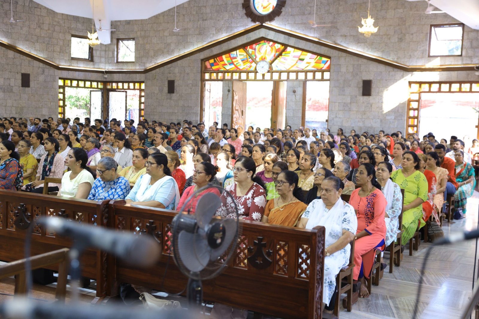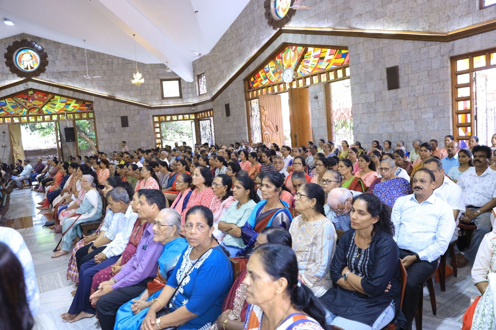 The day began early with the celebration of nine Holy Masses in various languages, reflecting the rich diversity of the devotional community. Devotees participated in large numbers, offering prayers of thanksgiving and intercession. A special Eucharistic adoration was held, during which prayers were offered particularly for the sick and those suffering from physical challenges. Fostering the spirit of fraternity and togetherness, lunch was served to all devotees present.