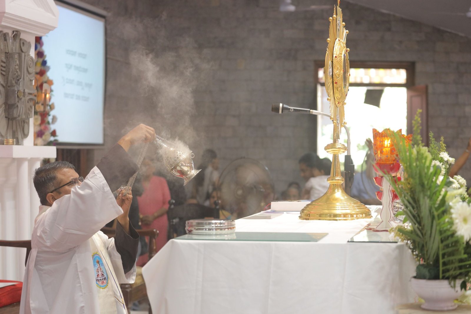 Rt. Rev. Dr. Thomas D’Souza, Archbishop Emeritus of Calcuttaand presently serving asAssistant Parish Priest at Our Lady of Lourdes Parish, Barasatoffered the10:30 a.m. Holy Massand prayed for theintentions of the devotees.