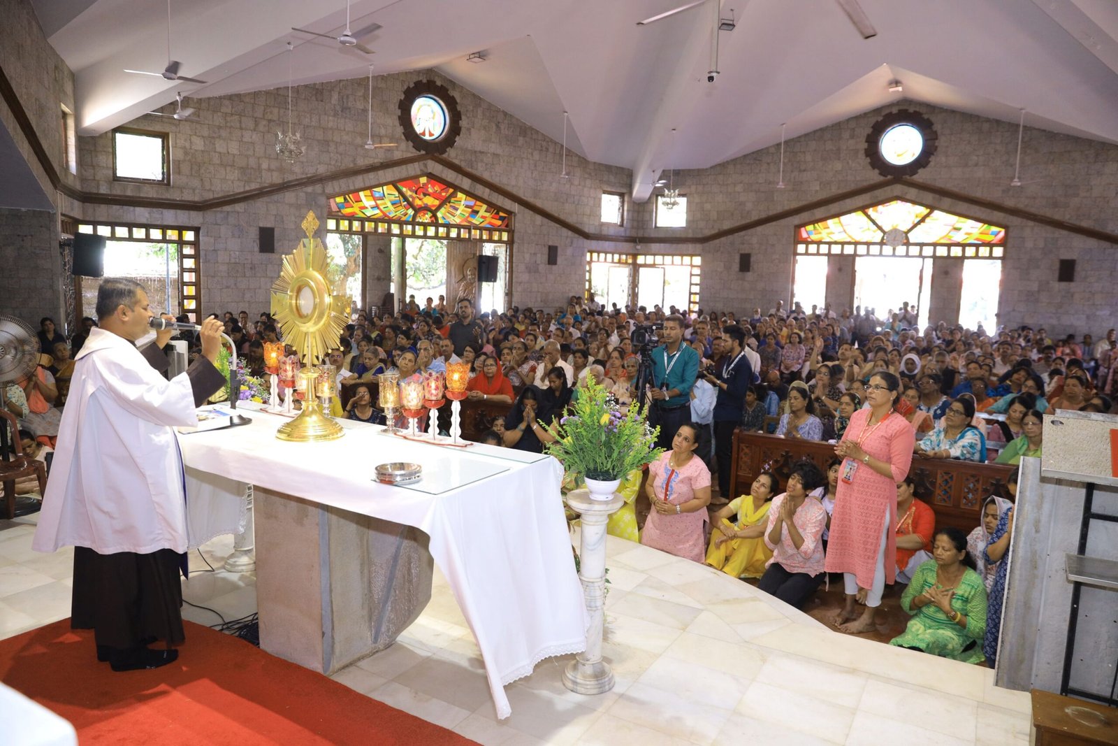 After the 10:30 a.m. Mass, a special adoration was held, dedicated to praying for media personnel. The adoration created a serene and reflective atmosphere, inviting participants to seek strength and guidance for their mission as educators and witnesses of faith. Many attendees expressed their deep gratitude for this meaningful and prayerful moment.