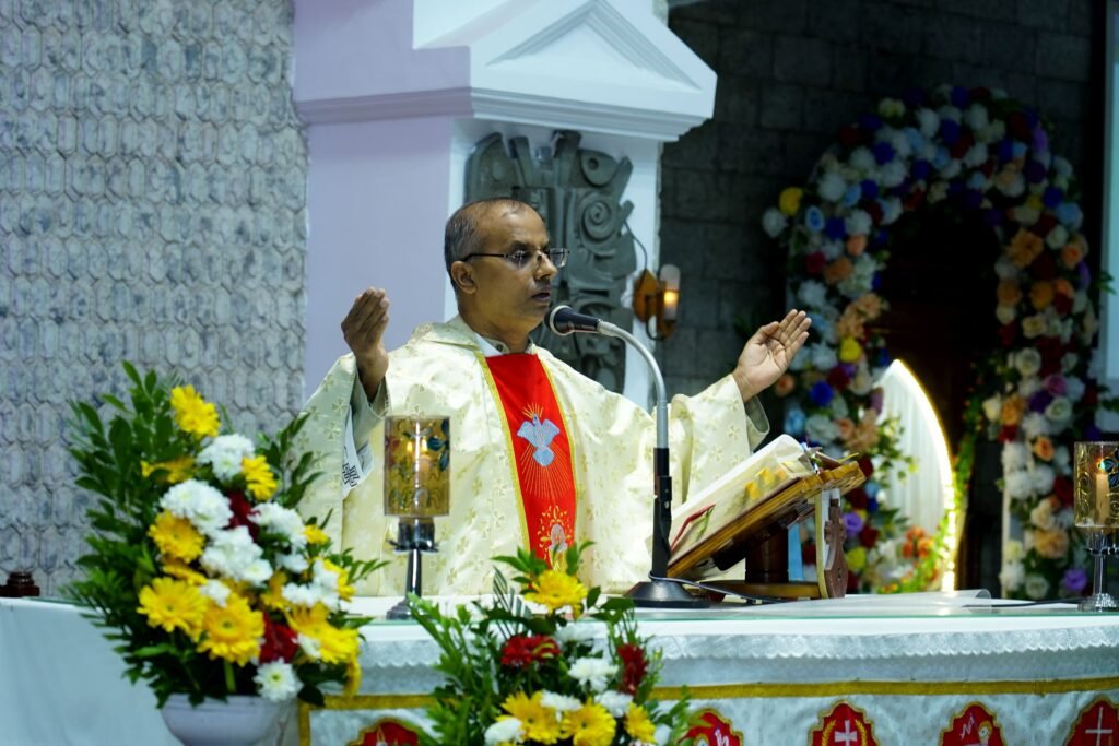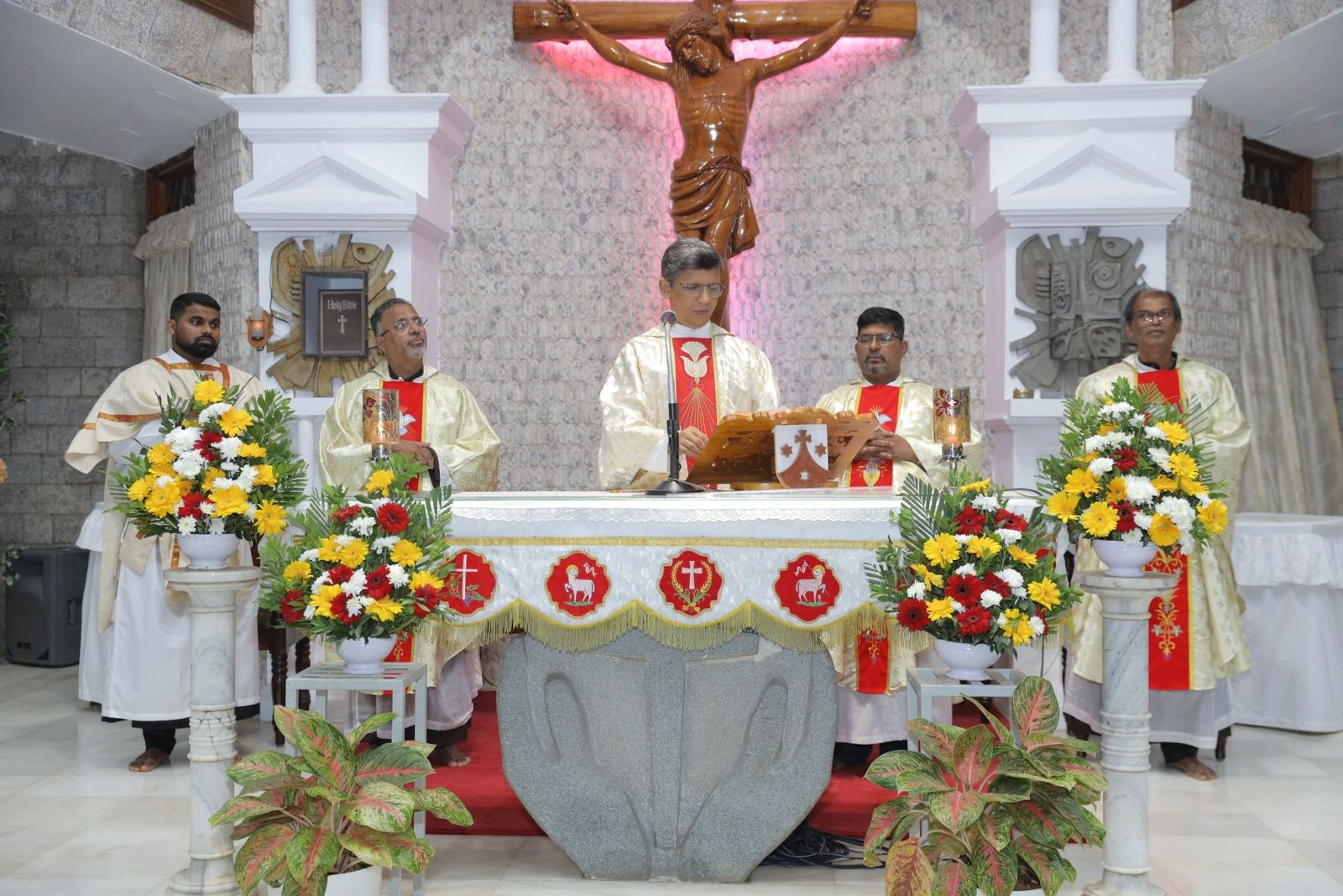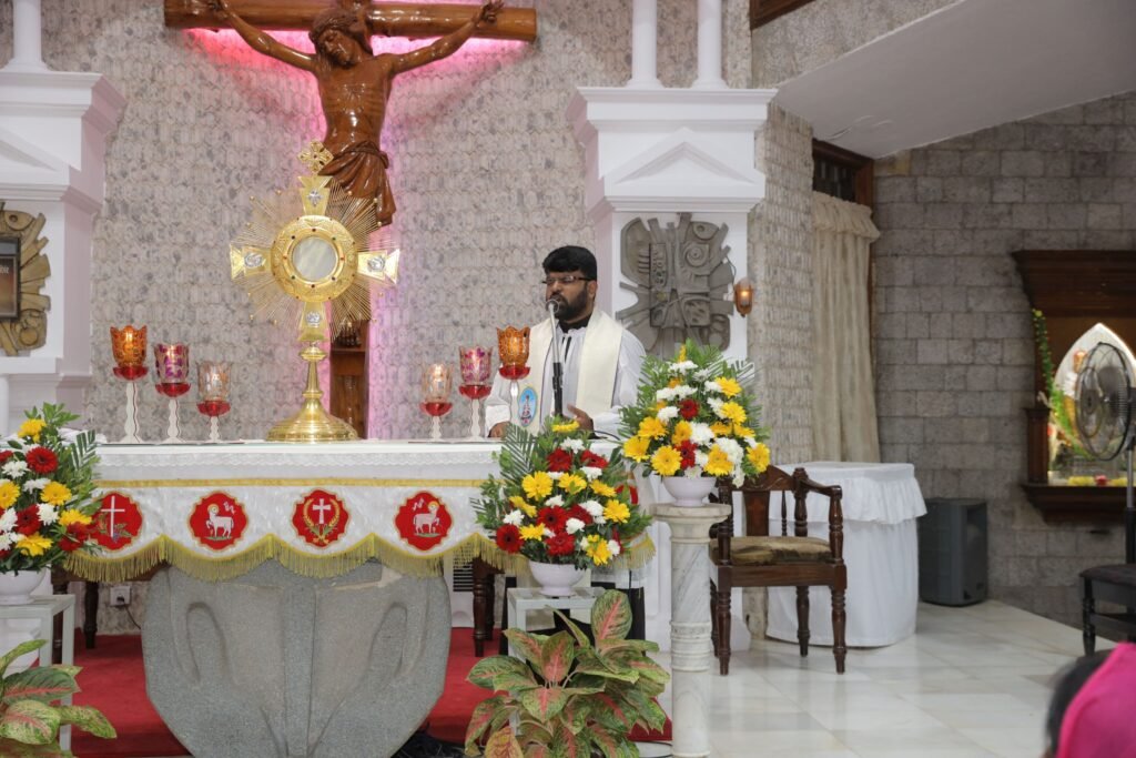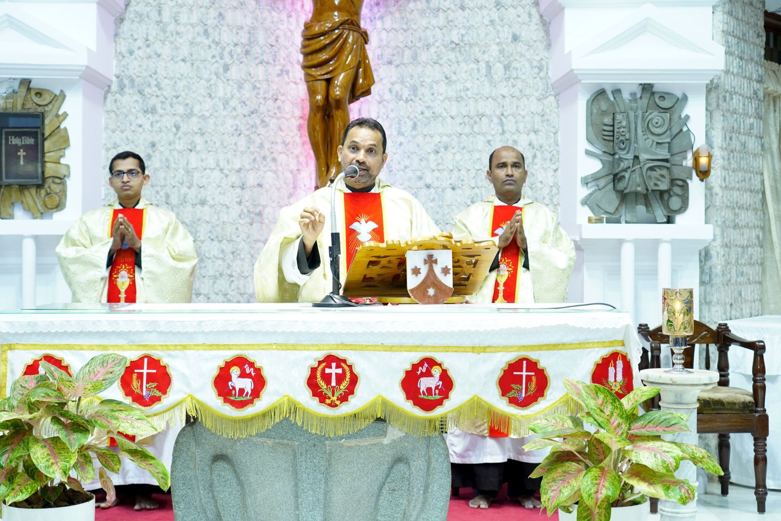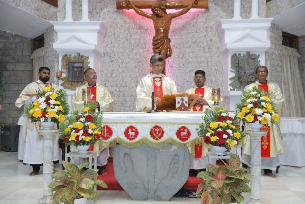 At the 11:30 a.m. Mass, Rt. Rev Dr. Ignatius Dwouza, Bishop of Bareilly, offered the solemn Eucharistic celebration, prayed for the intentions of the devotees, and thanked the Carmelites for their dedicated service at the shrine.